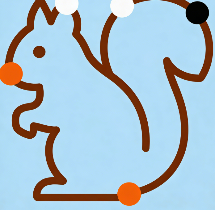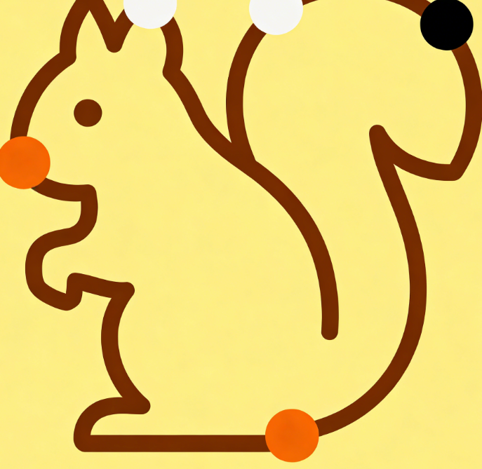 Detailed Description: An original, simple squirrel outline with 8 endpoints, corresponding to 4 colors (brown, white, black, and orange). Each color corresponds to 2 endpoints. After the player completes the connection, the squirrel outline will be filled with the full color, forming a cute cartoon image. There is no time limit, but after 3 incorrect connections, a “retry” message will be displayed, balancing fun and concentration training.