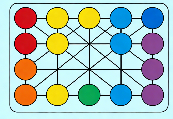 Detailed Description: Introduces basic color mixing knowledge (red + yellow = orange, blue + yellow = green, red + blue = purple). The screen displays 3 basic colors (red, yellow, blue) and 3 mixed colors (orange, green, purple). Each color corresponds to 2 endpoints (12 endpoints in total). Players must first determine the connection logic of the basic colors based on the mixed color hints, and then complete all the connections (the mixed color endpoints must be connected to their corresponding basic color endpoints). Connections cannot cross. A 3-minute time limit is set. Upon completion, the color mixing formula will be displayed, balancing knowledge dissemination with gameplay.