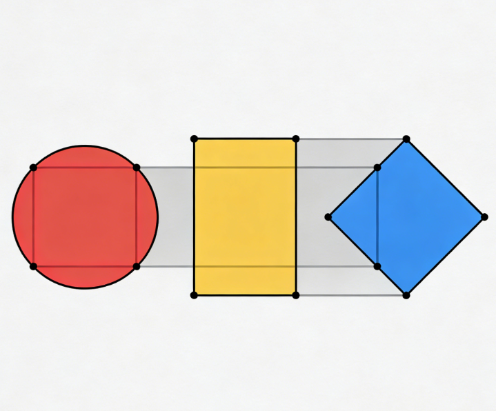 Detailed Description: The screen displays three simple geometric shapes (circle, rectangle, rhombus), each corresponding to a color (red, yellow, blue). Each shape has four endpoints. Players must connect the four endpoints of the same shape. Lines cannot exceed the shape’s boundaries or intersect. Upon completion, each shape will be filled with its corresponding color. A 2-minute and 10-second time limit is set. After three incorrect attempts, a “path hint” will be displayed (the correct answer is not given, only the possible connection areas are indicated).