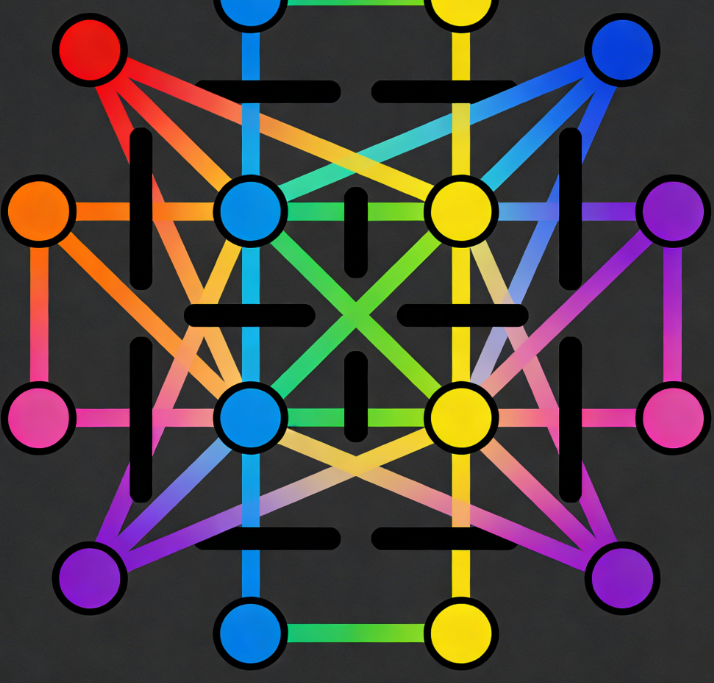 Detailed Description: This set integrates three elements: gradient colors (3 sets), color mixing (2 sets), and obstacle lines (several). It uses a total of 5 basic colors, 2 mixed colors, and 1 gradient color, with 16 endpoints. Players must meet three conditions to complete all connections: “gradient order, mixed association, and avoiding obstacles.” Connections cannot intersect or cross obstacles. There is a 4-minute time limit. After 5 errors, a path hint will be given. Completion earns the “Ultimate Challenge Badge,” suitable for advanced players.